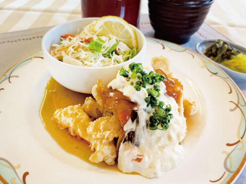 大分名物とり天を使ったとり天南蛮。コクのある黒酢で仕上げました。